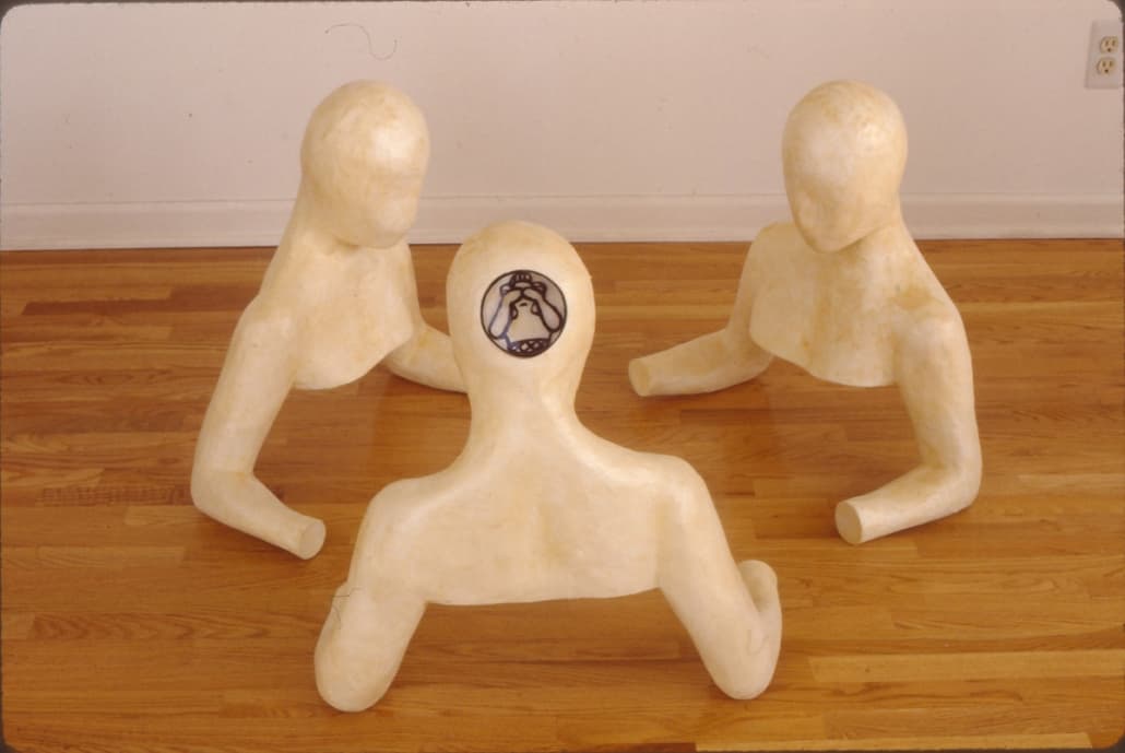 As an artist creator I manipulated figures by dissecting, assembling, duplicating, multiplying, mutating, clothing or unclothing them. I could use a body of a male, a female, a non-descript gender, or a child to make a certain statement. As long as we are humans, the human body will always be an object of interest, making the human body a powerful tool in art creation. I made these figures by wrapping my body in sections with many layers of glued newspaper and further finished the surface with layers of paint and latex rubber.