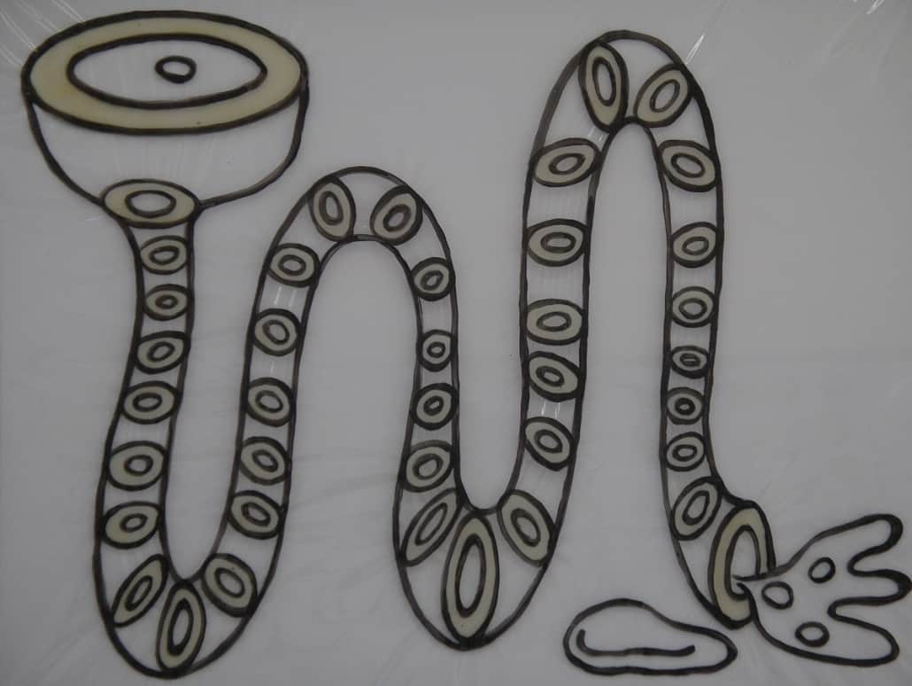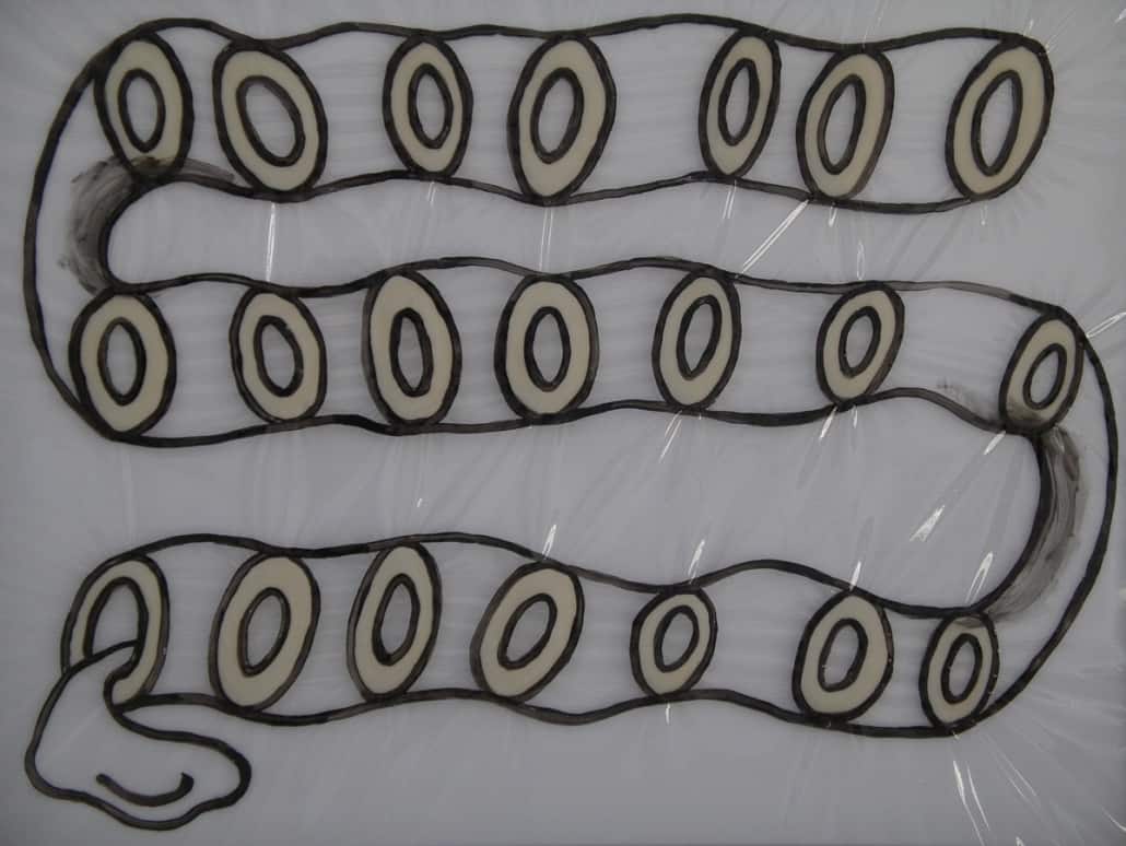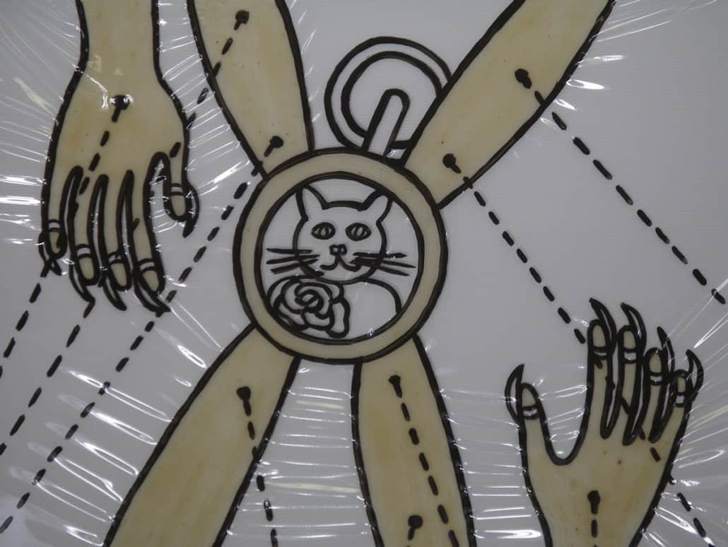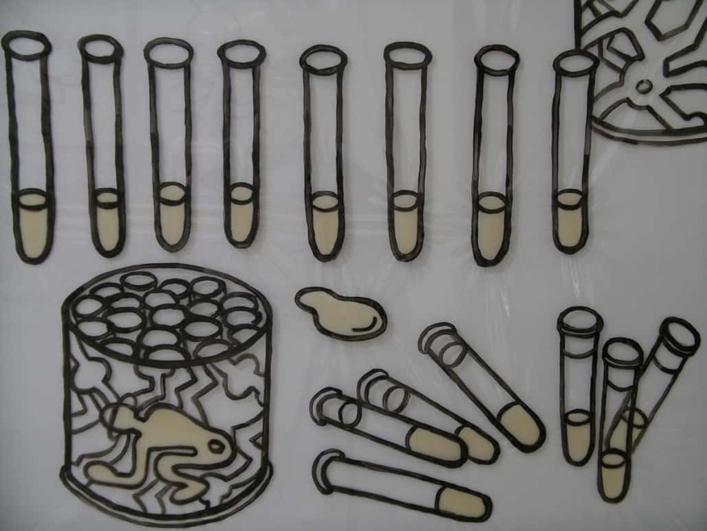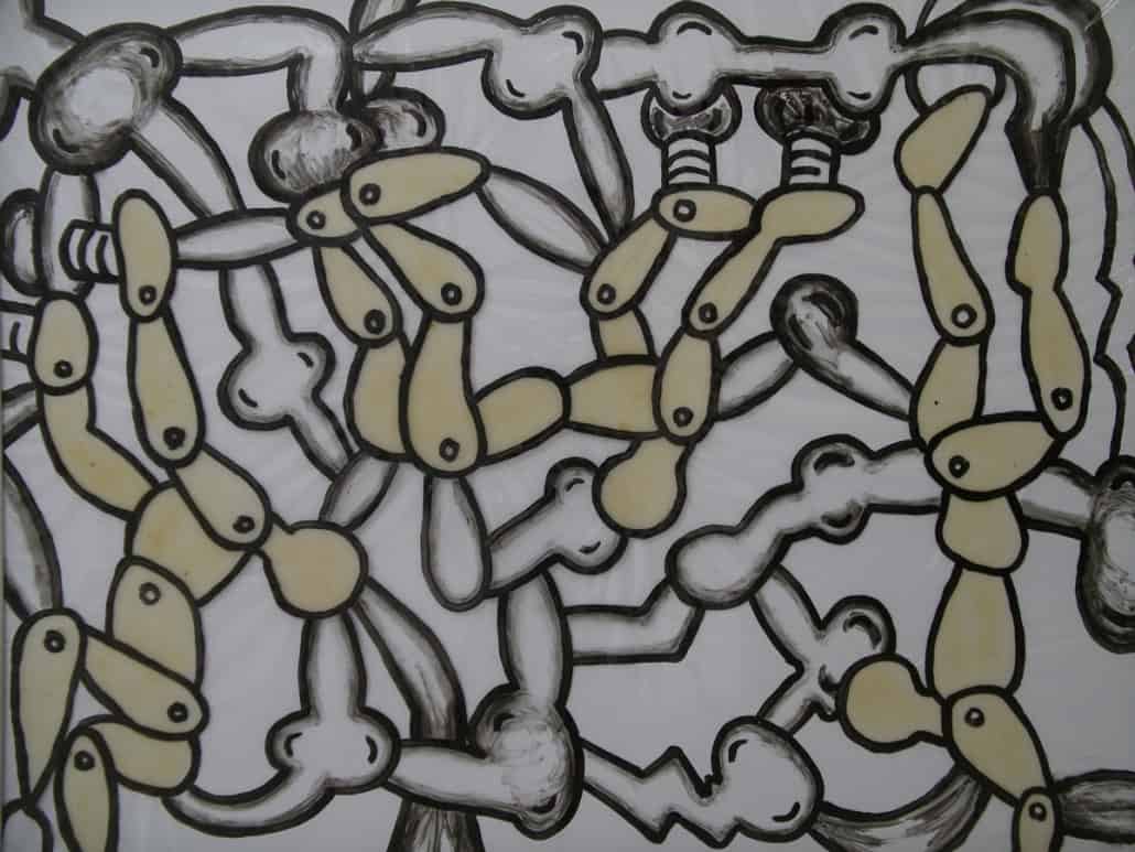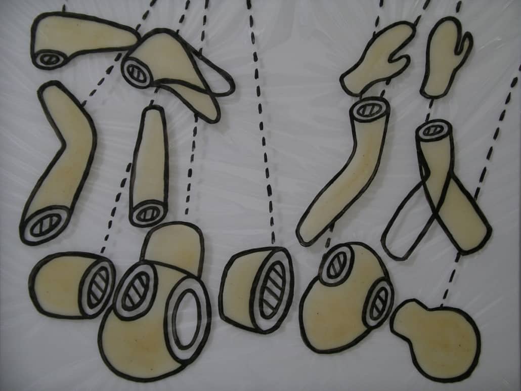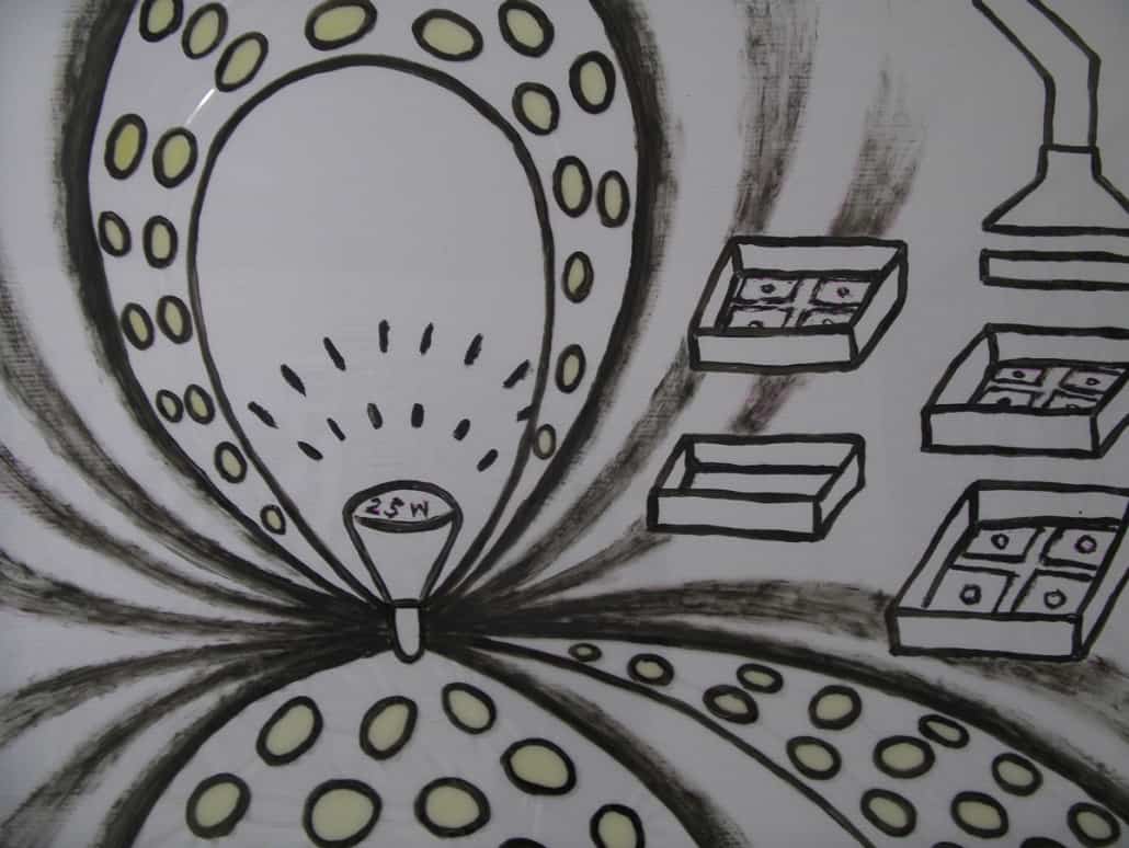 This series is about women’s reproductive experiences: women’s bodies going through physiological changes, child bearing and nurturing, artificial insemination, sexual violence, and the body being controlled by other forces. I drew these images on vinyl sheets, then stretched them over ColorCore panels. I also used LED lights to brighten the drawings from behind, trying to create light box effects.
