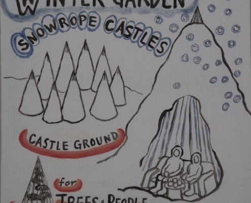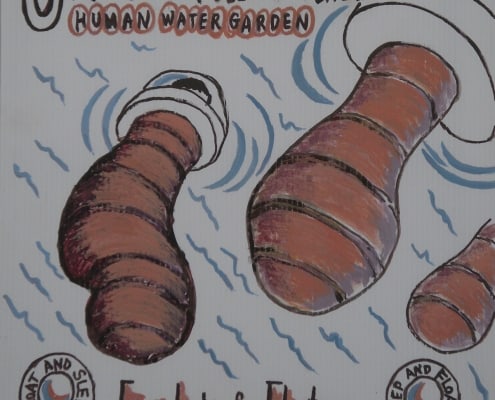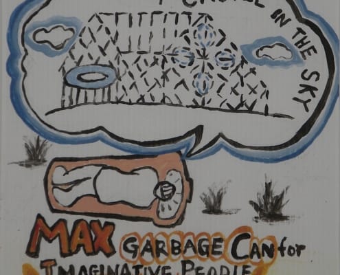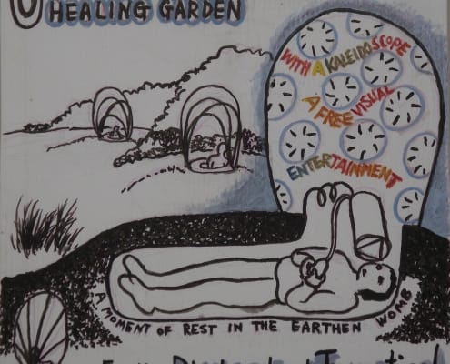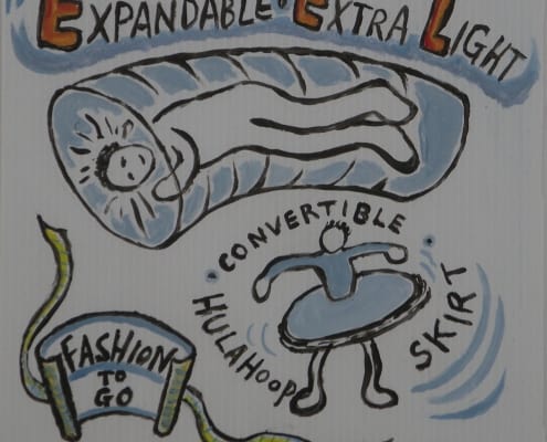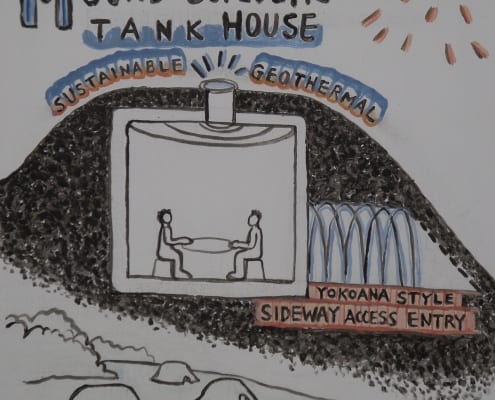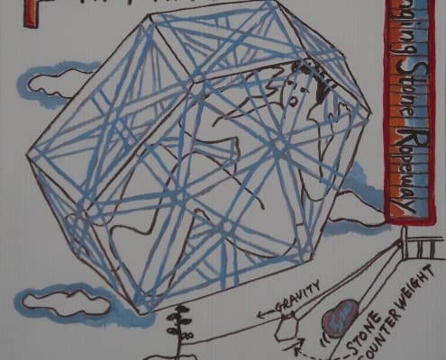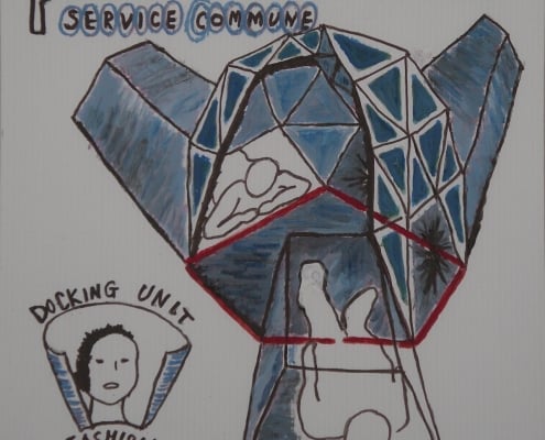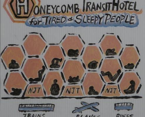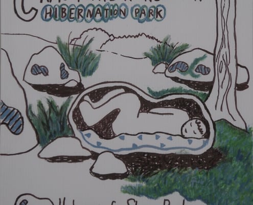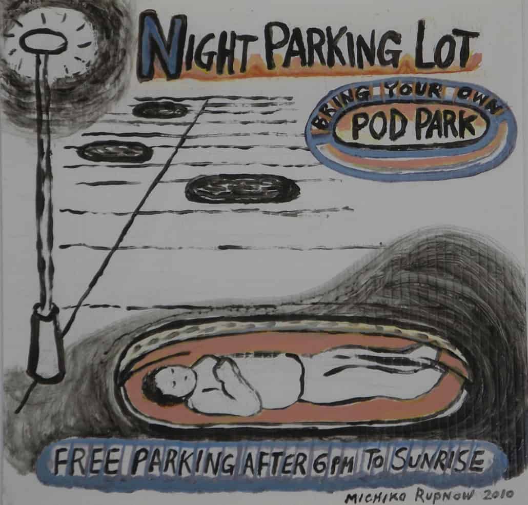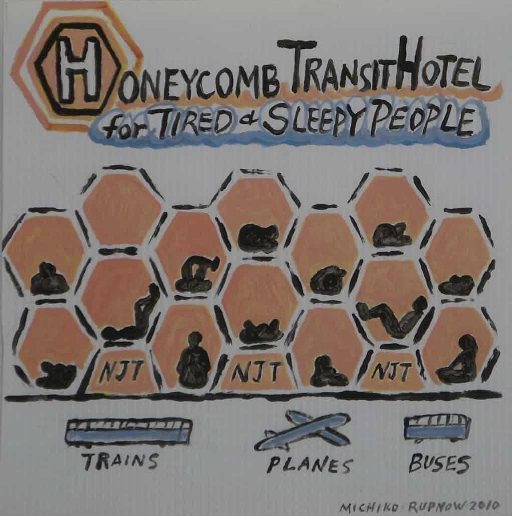 When I was developing my sculpture series “Temporary Shelters,” I was casually drawing many different versions. Later I made cleaned-up versions of these concept drawings using acrylic paint on plastic boards.