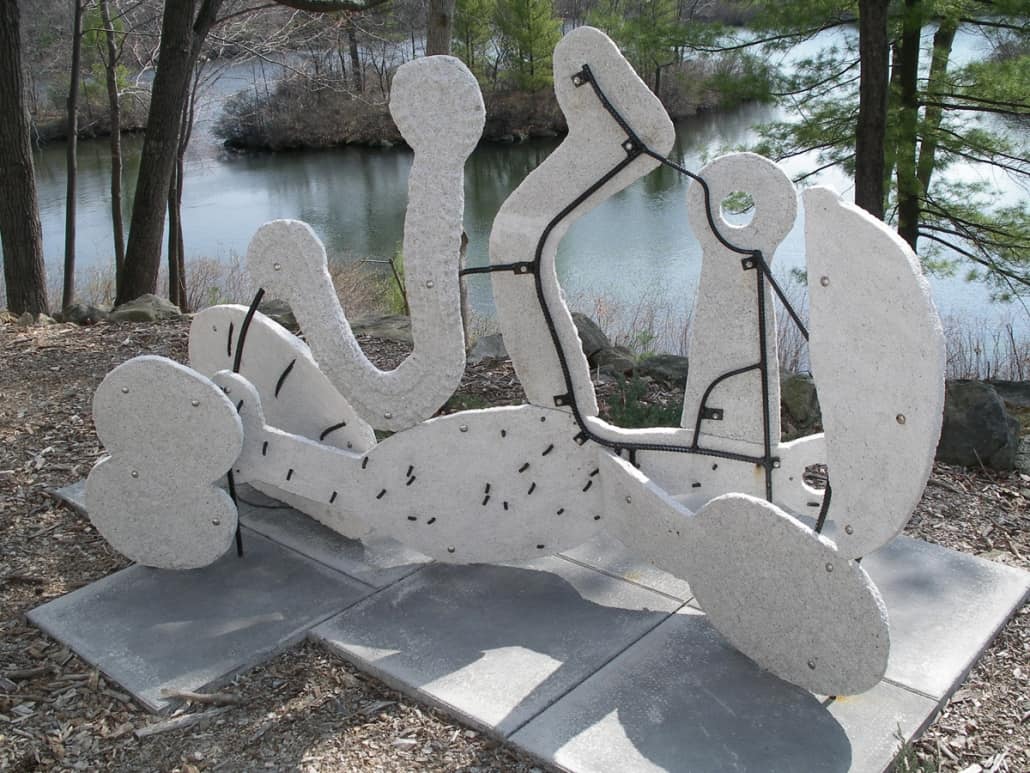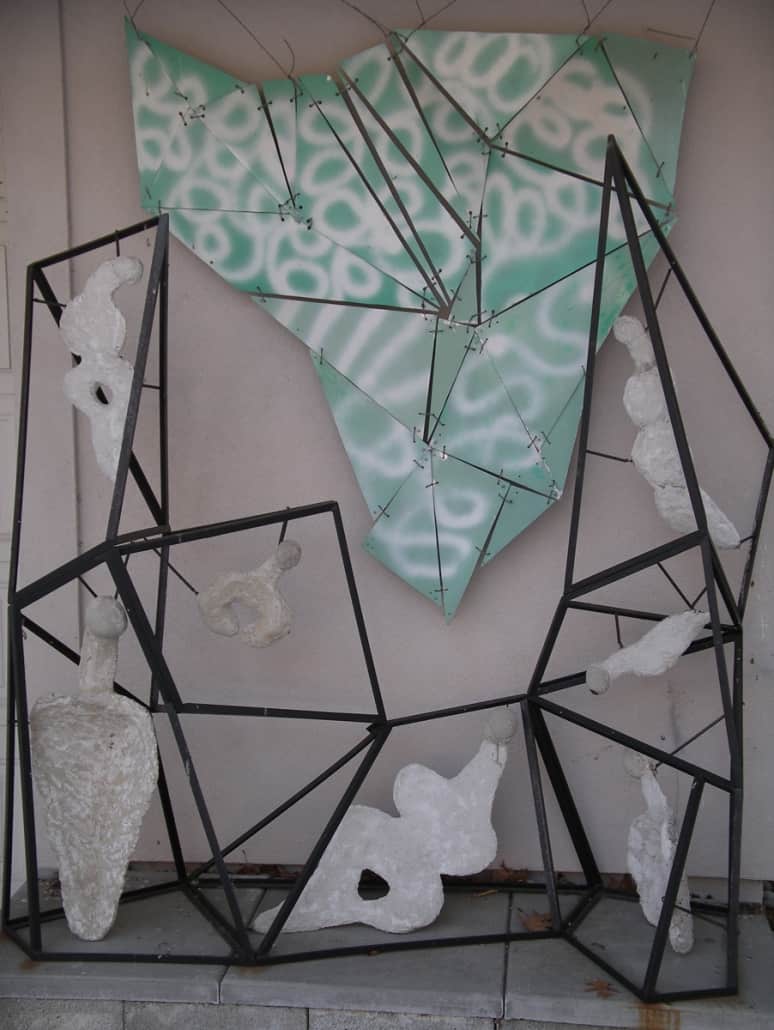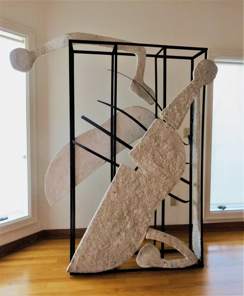 This is the initial sculptural series that I developed after graduating from art school. Early on with children, the home was my domain. I thought about defining the space I inhabited by developing a three-dimensional XYZ axis, and I imagined placing myself in this mathematical space. I occupied it as if it were my house to inhabit and a house prison to break away from. Being made with steel and concrete, the sculptures are architectural and at the same time psychological, dealing with the juxtaposition of the relationship and social meanings attached to the house.